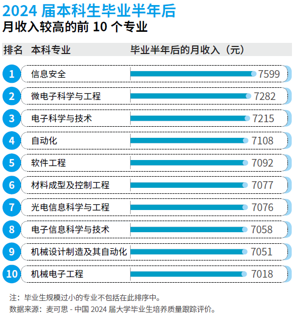 这些“绿牌”专业正在就业市场表示抢眼,不只薪资程度位居前列,更以高专业婚配度和就业对劲度著称。2024届微电子科学取工程专业结业生平均月收入达7282元,高居本科专业收入榜第二位;电气工程及其从动化专业的就业相关度和对劲度别离达到86%和85%。
